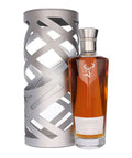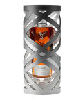 The stunning outer packaging evokes the concept of suspended time — moving ribbons frozen mid-motion, forming sculpted cut-outs that reveal the elegant decanter within. With dynamic lines and architectural finesse, the bottle appears effortlessly suspended, echoing the whisky’s story of stillness in time.